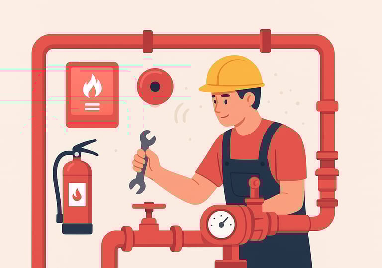 Manutenção em alarmes de incêndio.